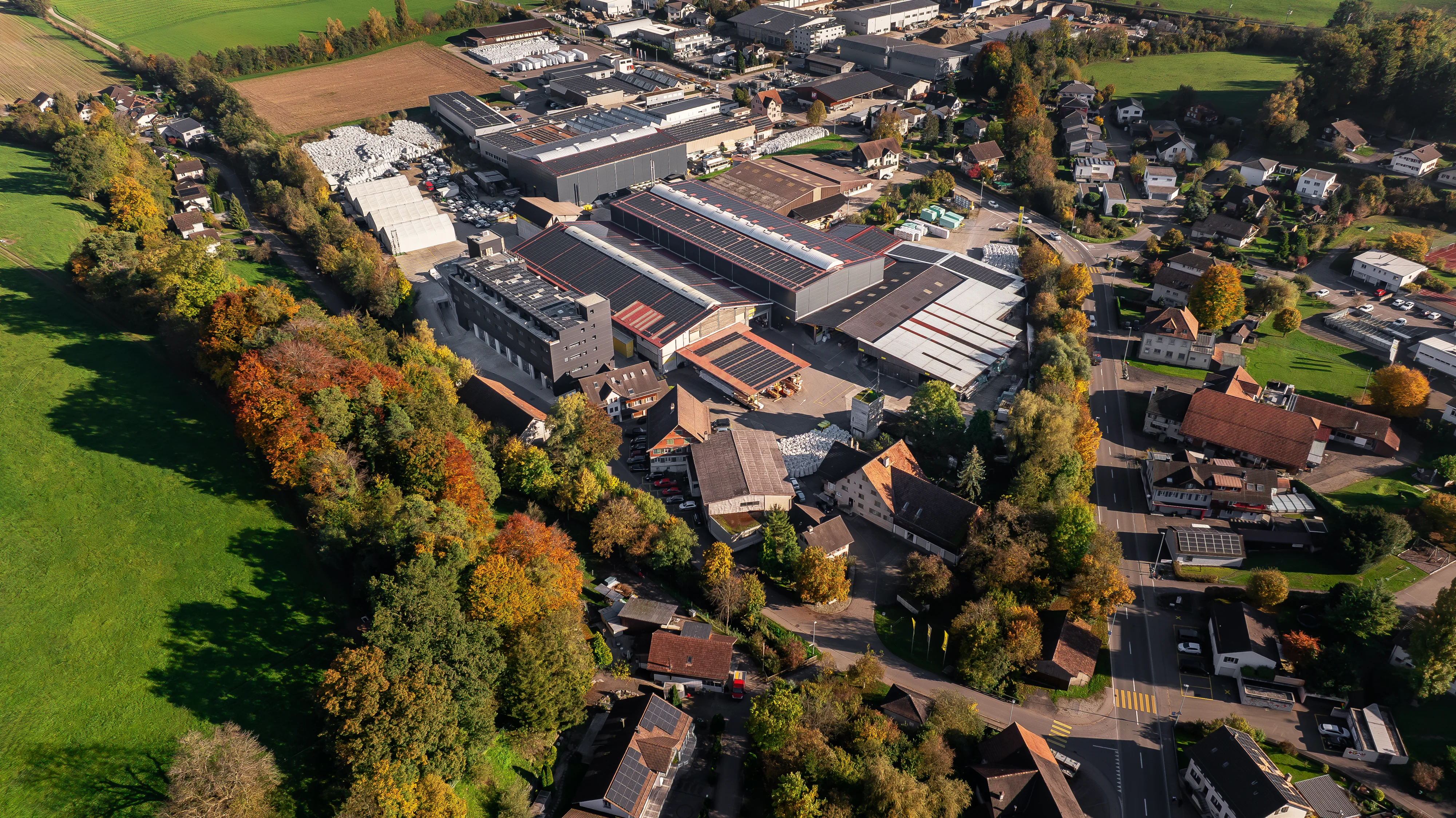 Mit einer Leistung von rund 1650 kWp produziert unsere PV-Anlage soviel Strom wie rund 500 Haushalte verbrauchen. Dafür wird eine Hallenfläche von rund 12’000 m2 benötigt.